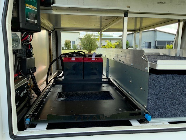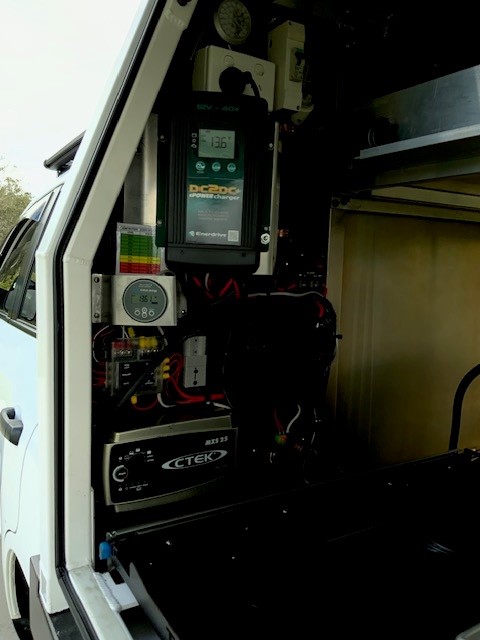 2 x 1000mm led lighting on doors, switchable yellow or white light Enderdrive DC to DC charger and solar regulator