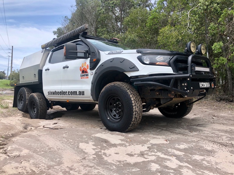 This, combined with up to 300mm of articulation between those two rear axles, enables our Six Wheelers to typically go where any standard 4 wheeler vehicle will travel both on and off road. Our Six Wheelers can keep up with their unmodified 4 wheeler counterparts in most situations when empty, but when loaded the Six Wheeler will greatly out-perform the 4 wheeler, particularly in sand.